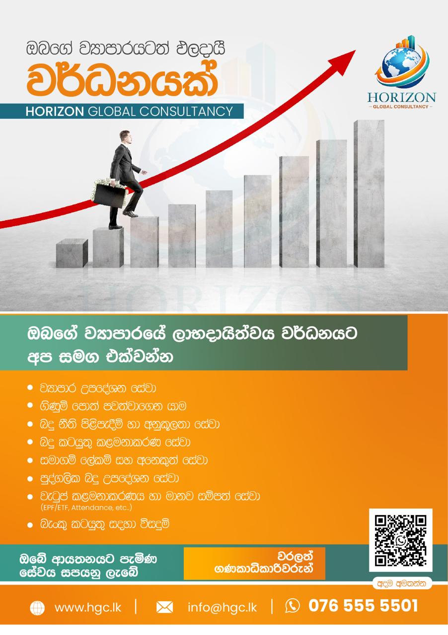 Horizon Global Consultancy is a Sri Lankan-based professional advisory firm providing finance, tax, business, and operational solutions for small and medium enterprises, startups, and individuals. Our mission is to simplify business complexity while helping clients grow sustainably, remain compliant, and access global opportunities.
